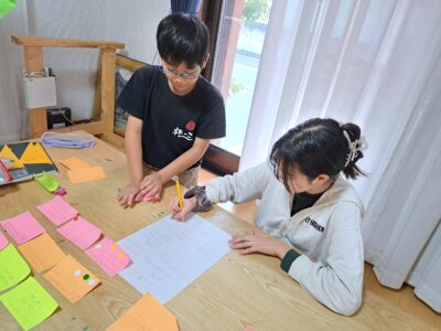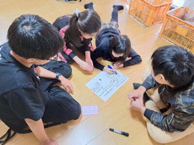 模造紙いっぱいに付箋を貼りながら、何時間も議論を重ねる子どもたち。