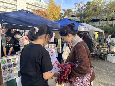 地元で愛されるマルシェの1つで、ジュニアビレッジの活動に共感してくださるお客さまも多く、