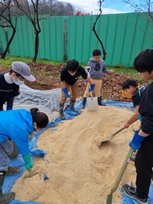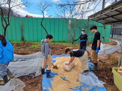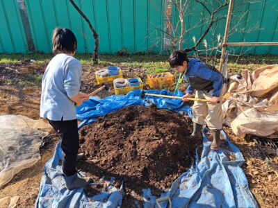 横浜ジュニアビレッジ根っこ塾では、毎年12月から完熟堆肥づくりに取り組んでいます。