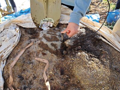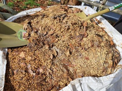 切り返すとは、微生物の発酵をうながすため、一度袋にいれた堆肥を全部だして、水を加えてまた堆肥袋に戻す作業です。